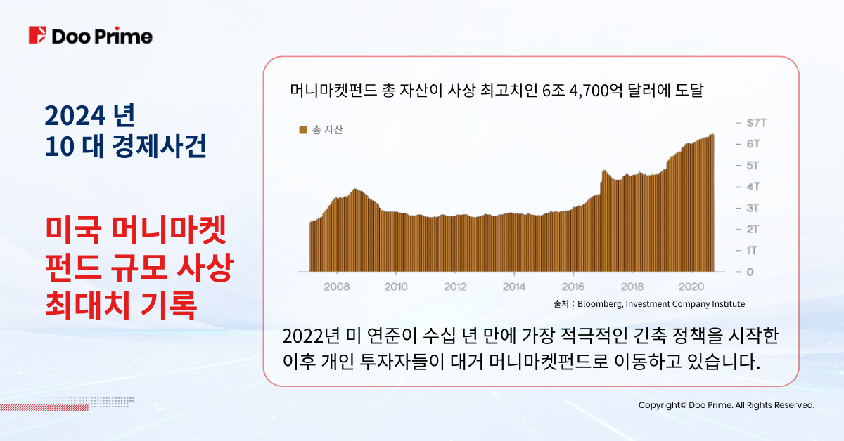 투자회사협회에 따르면 10월 9일 현재 약 110억 달러가 미국 머니마켓 펀드에 유입되어 총 자산 규모가 6조 4700억 달러로 기록되었습니다. JP모건은 연준이 9월 기준금리를 0.5%포인트 인하했음에도 머니마켓펀드가 다른 수단 특히 은행 예금에 비해 높은 수익률을 보여 신규 자금 유입을 유도하고 있다고 지적했습니다.