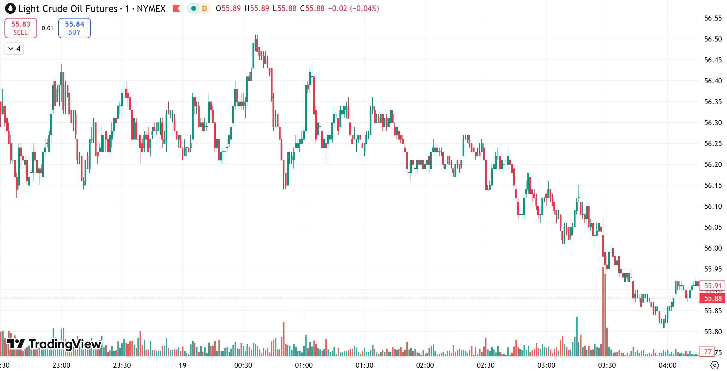 国际油价周四小幅收高,市场正在权衡因俄乌和谈与委内瑞拉局势而日益加剧的供应端风险。布伦特原油收盘微涨 0.2%,报每桶 59.82 美元;美原油上涨 0.4%,报 56.15 美元。