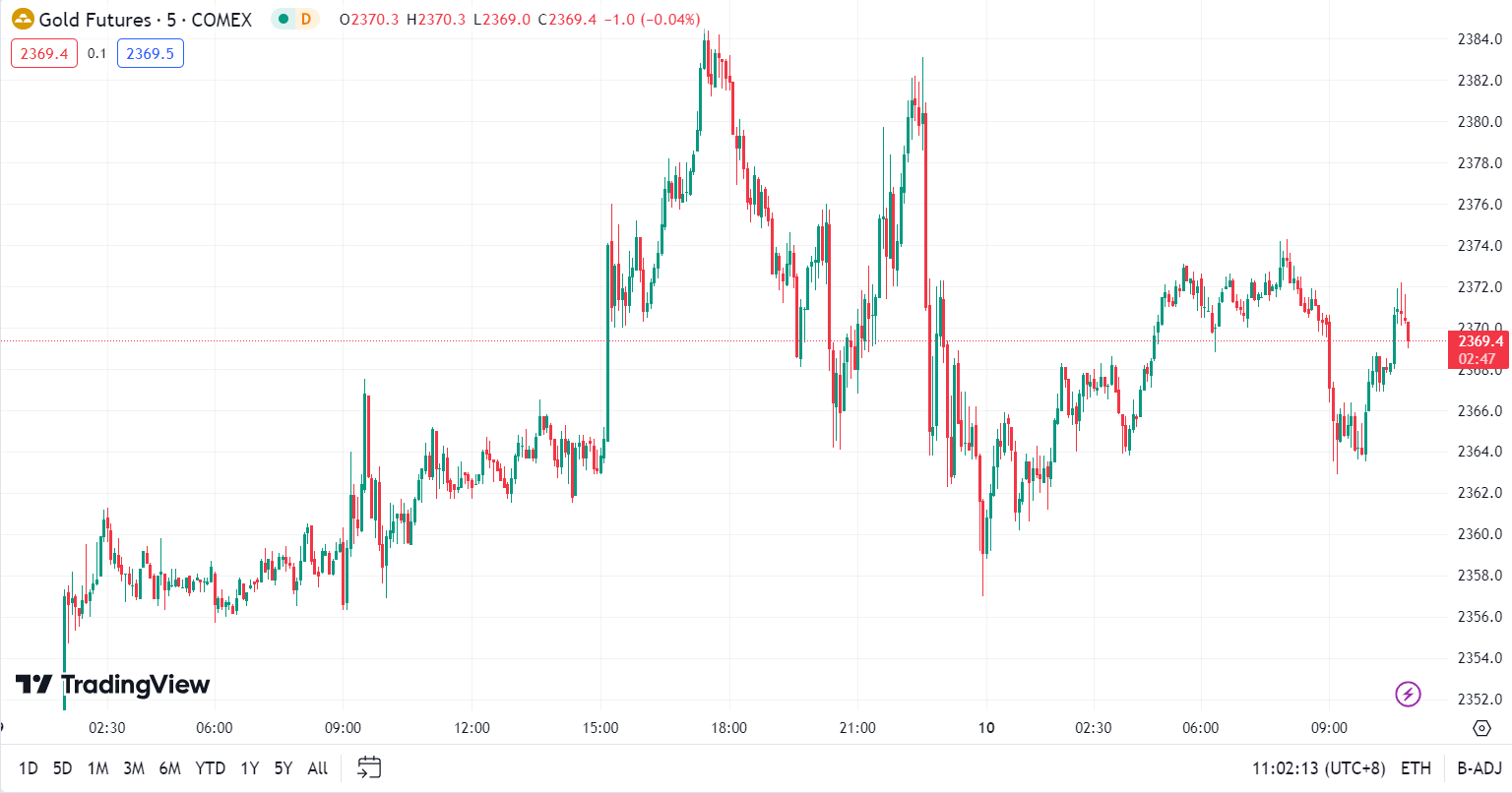 现货黄金高位窄幅震荡,目前交投于 2353.48 美元/盎司附近。金价周二延续创纪录涨势,盘中一度刷新历史高点至 2365.18 美元/盎司,受助于买盘动能和地缘政治风险,同时市场焦点转向美联储的政策会议记录和美国通胀数据,以寻找有关美国降息时间表的更多信息。