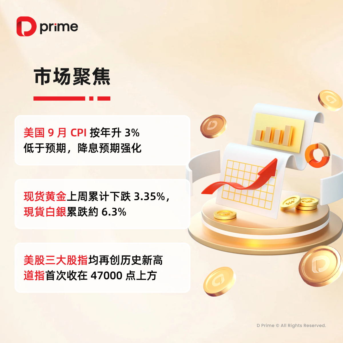 精选研报 | 上周,美国 9 月 CPI 按年升 3% 低于预期,降息预期强化,美股三大股指均再创历史新高。周多只美股科技七巨头股票将发布第三季度财报,市场预计美联储将在 10 月 29 日的会议上降息,还有哪些大事值得关注?下方图片速览: