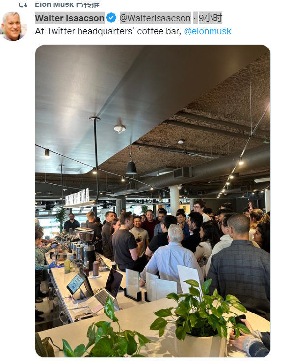 马斯克曾公开批评推特过于臃肿,认为其员工有强烈的左翼倾向。 据《华盛顿邮报》此前援引知情人士和一份文件报道称,马斯克计划在未来几个月内将推特的 7500 名员工人数减少到 2000 多人。周五( 10 月 28 日)凌晨一点左右,马斯克转发一条推文,图片显示马斯克正和员工在推特总部的咖啡厅交谈。马斯克给推特员工派定心丸, 否认将裁员 75%。