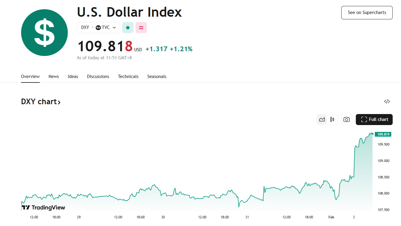 2 月 3 日,全球股市重挫,标普 500 指数期货合约下跌 1.69%,纳斯达克 100 指数期货合约下跌 2.22%;欧元 STOXX 50 指数期货盘中跌 3%;MSCI 亚太指数跌近 2%;日经 225 指数下跌 2.27%,东证指数下跌 1.8%;韩国 KOSPI 指数下跌 2.84%。