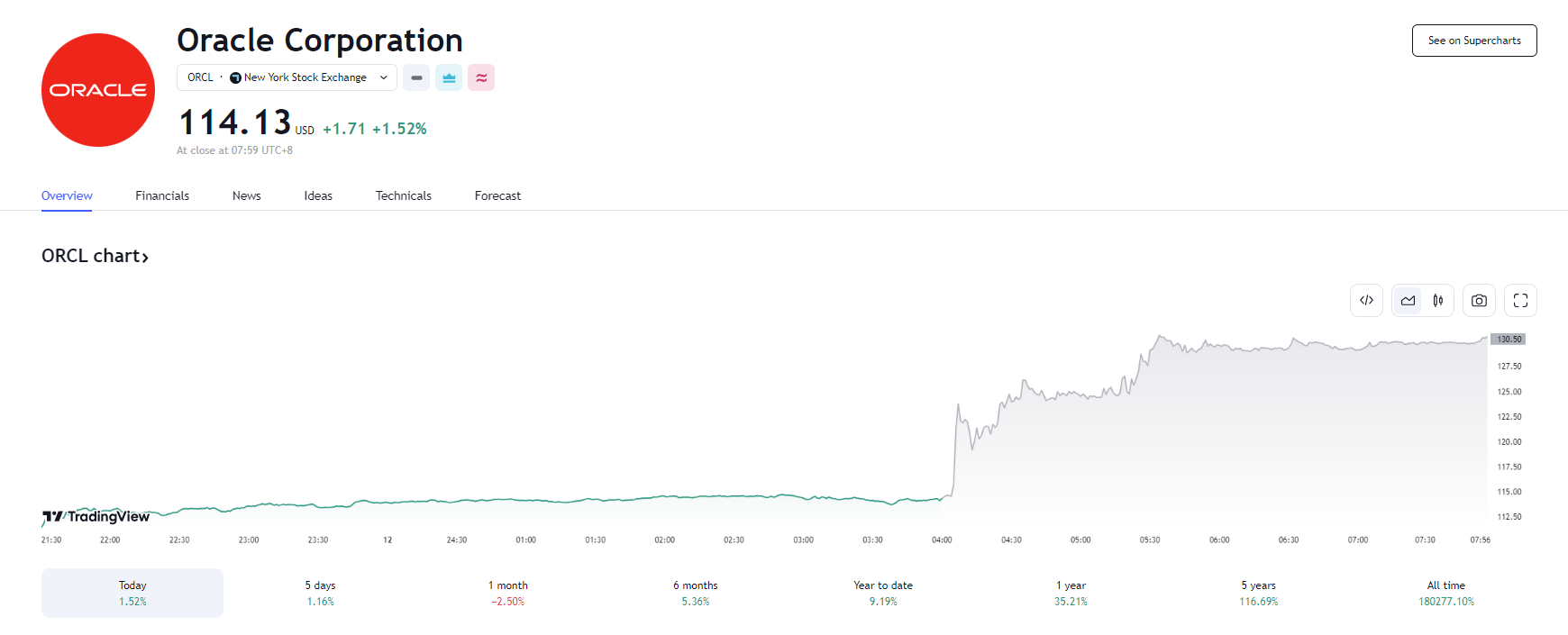 在 AI 快速发展的推动下,市场对甲骨文云计算服务需求猛增,让甲骨文交出亮眼的季度财报。此外,甲骨文称很快将与英伟达发布合作细节,叠加预计 2025 财年用于数据中心建设的资本支出将达到 100 亿美元,提振甲骨文股价盘后大涨。截至发稿,甲骨文涨逾 13%,报 130.50 美元。