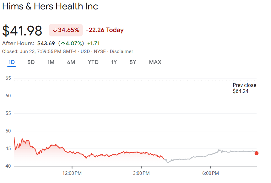 诺和诺德终止与其合作关系,Hims 股价暴跌近 35%
