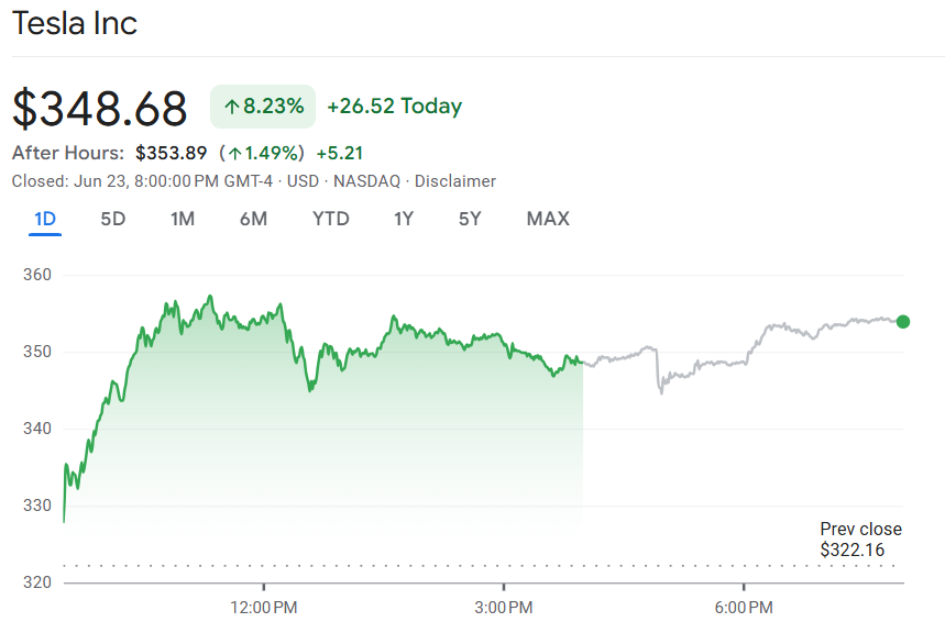 Robotaxi 服务正式启动,每趟僅收 4.20 美元,特斯拉股价收涨 8%