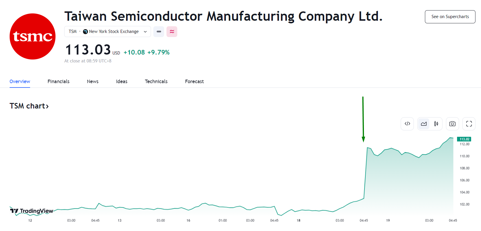 此外,财报发布后,台积电大涨 9.8%,领涨半导体板块。