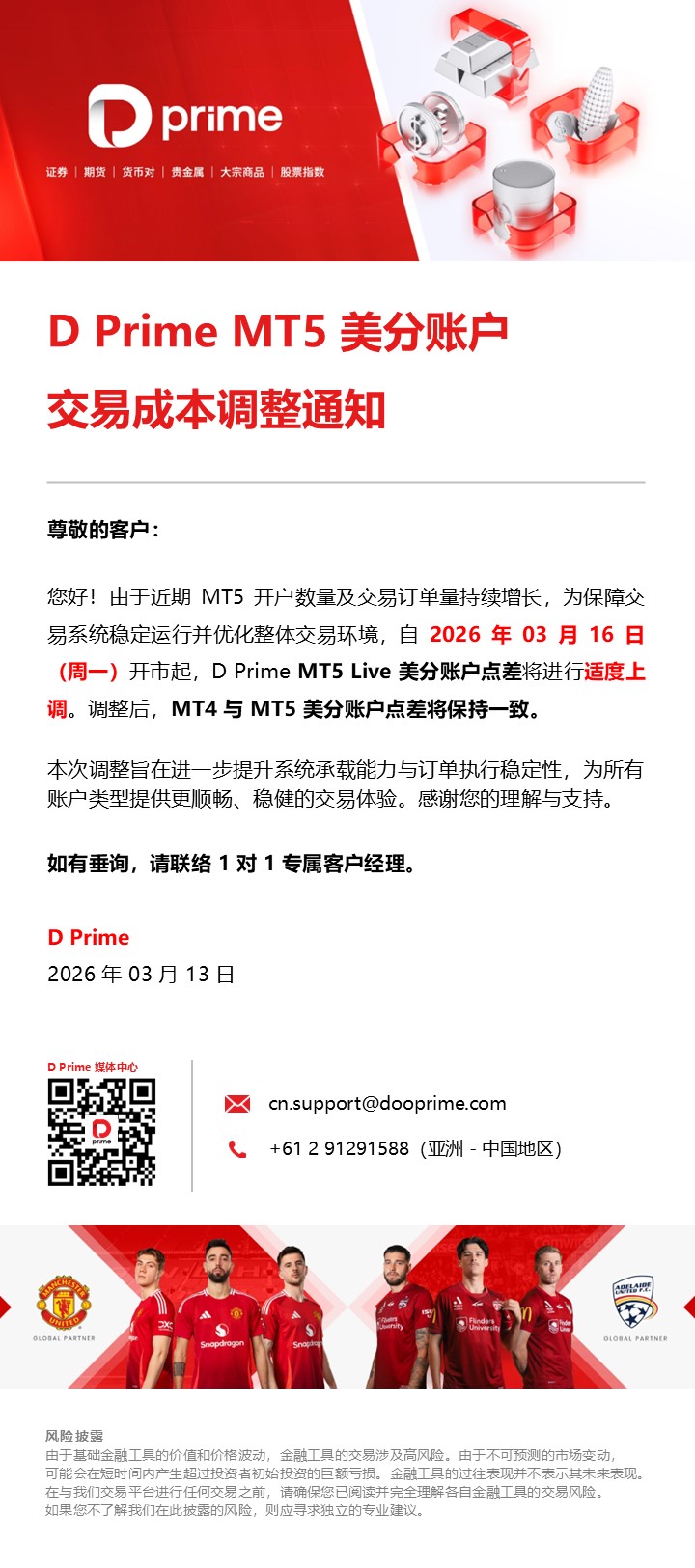 D Prime MT5 美分账户交易成本调整通知