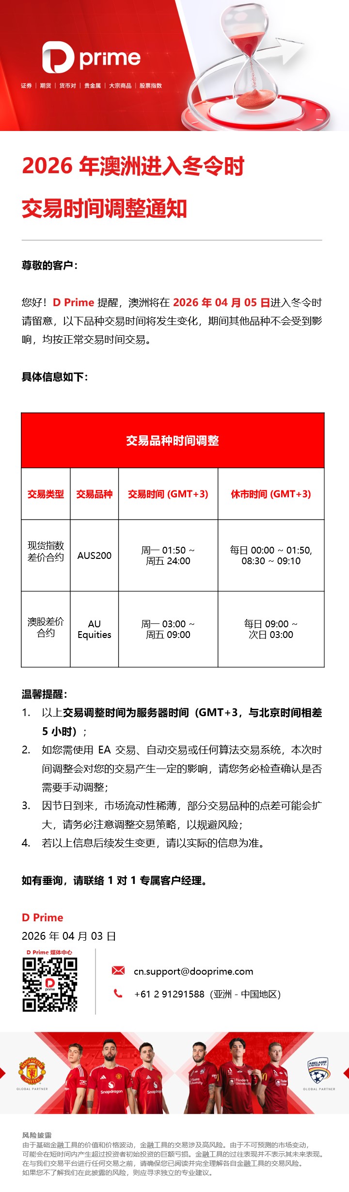 2026 年澳洲进入冬令时交易时间调整通知