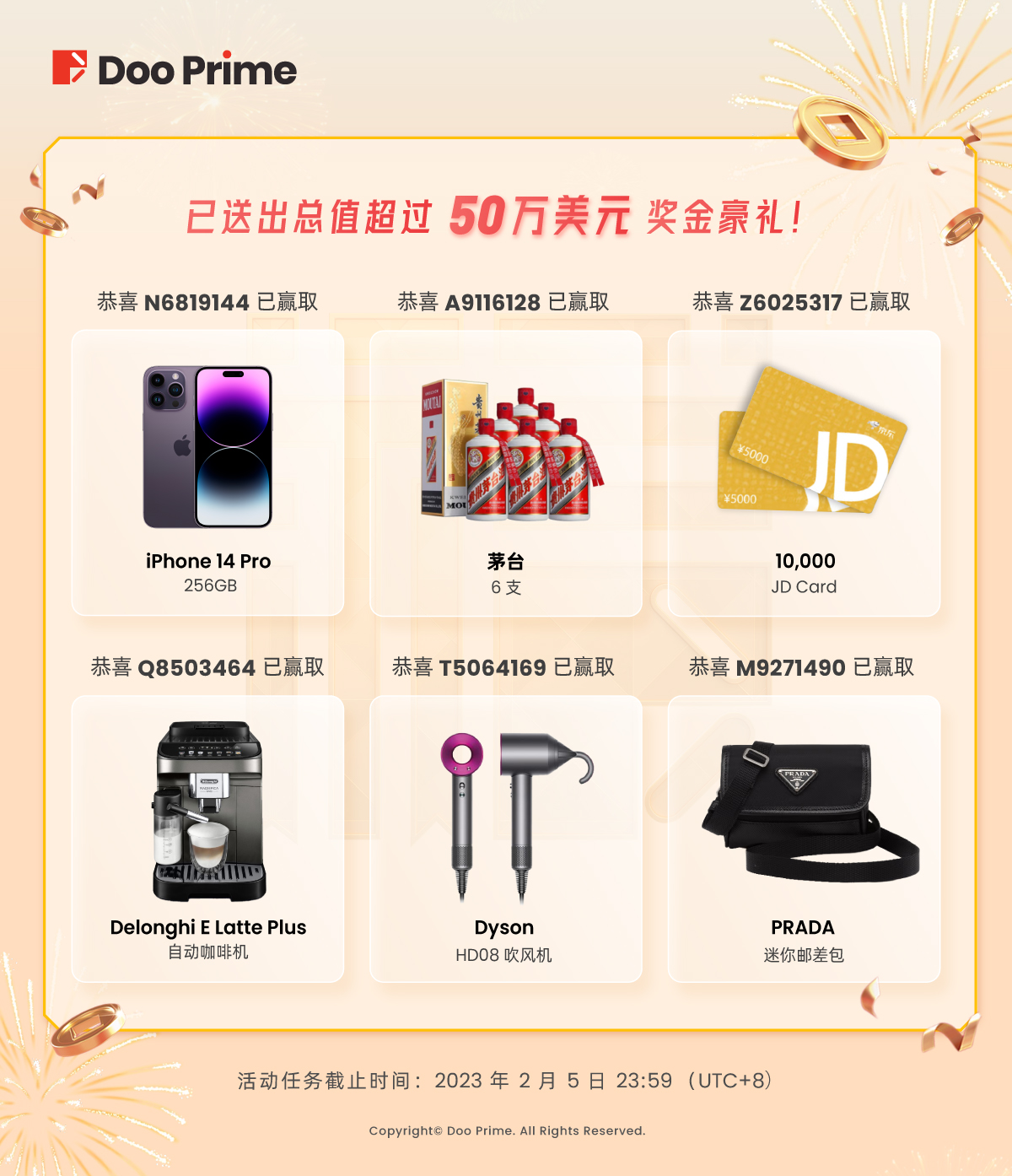 立即点击参与全球大抽奖活动:https://www.dooprimeoffer.com/cny