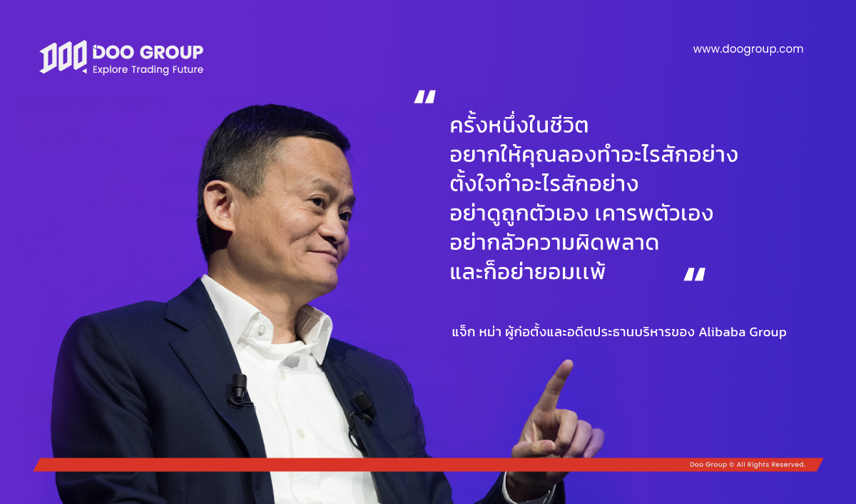 “ครั้งหนึ่งในชีวิต อยากให้คุณลองทำอะไรสักอย่าง ตั้งใจทำอะไรสักอย่าง อย่าดูถูกตัวเอง เคารพตัวเอง อย่ากลัวความผิดพลาด และก็อย่ายอมเเพ้” กล่าวโดยแจ็ก หม่า ผู้ก่อตั้งและอดีตประธานบริหารของ Alibaba Group