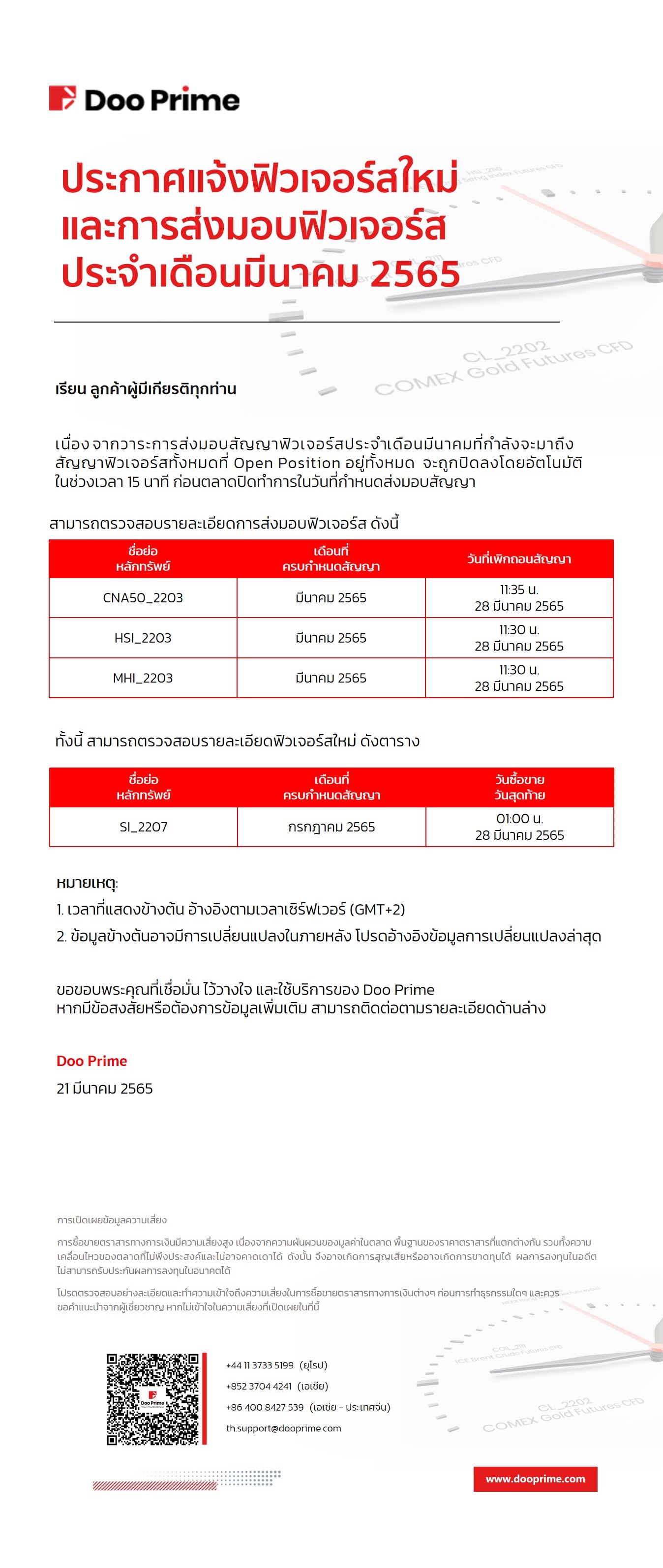2022-03-21 | Futures Delivery , ส่งมอบฟิวเจอร์ส