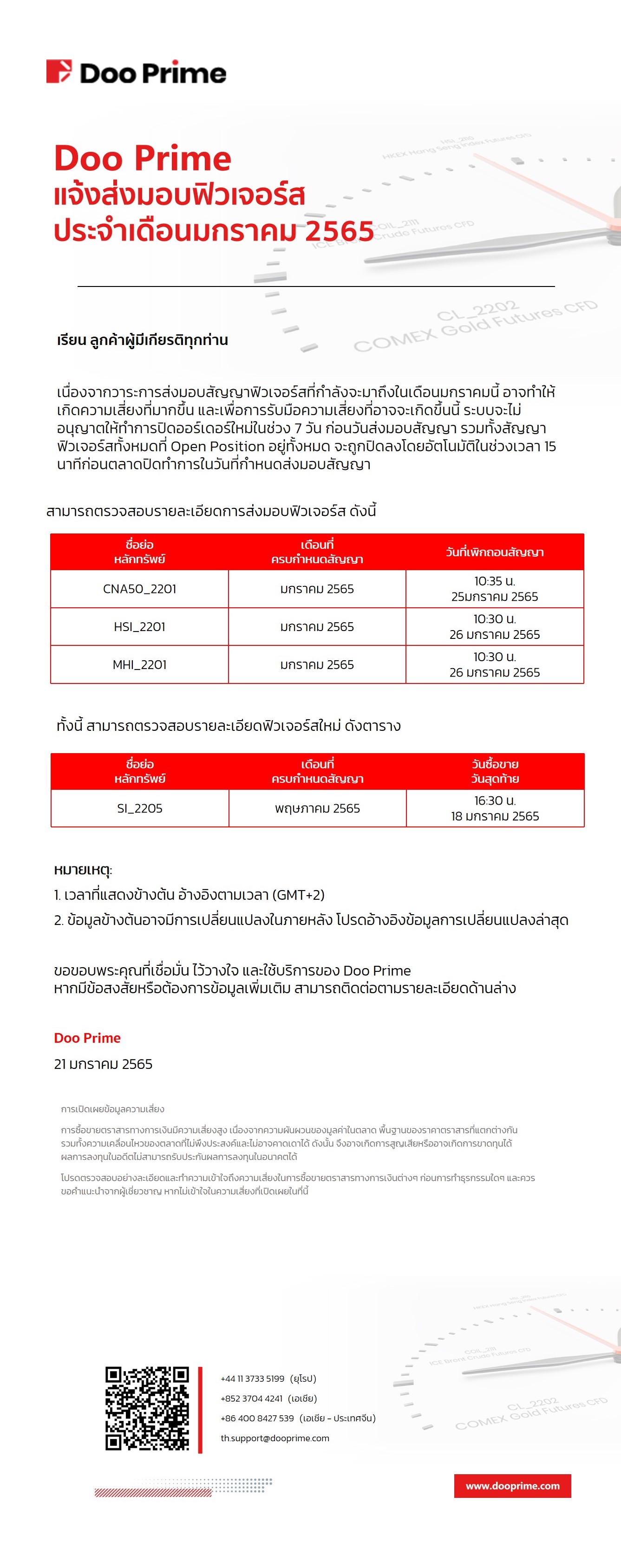 2022-01-21 | Futures Delivery , มกราคม 65 , ส่งมอบฟิวเจอร์ส