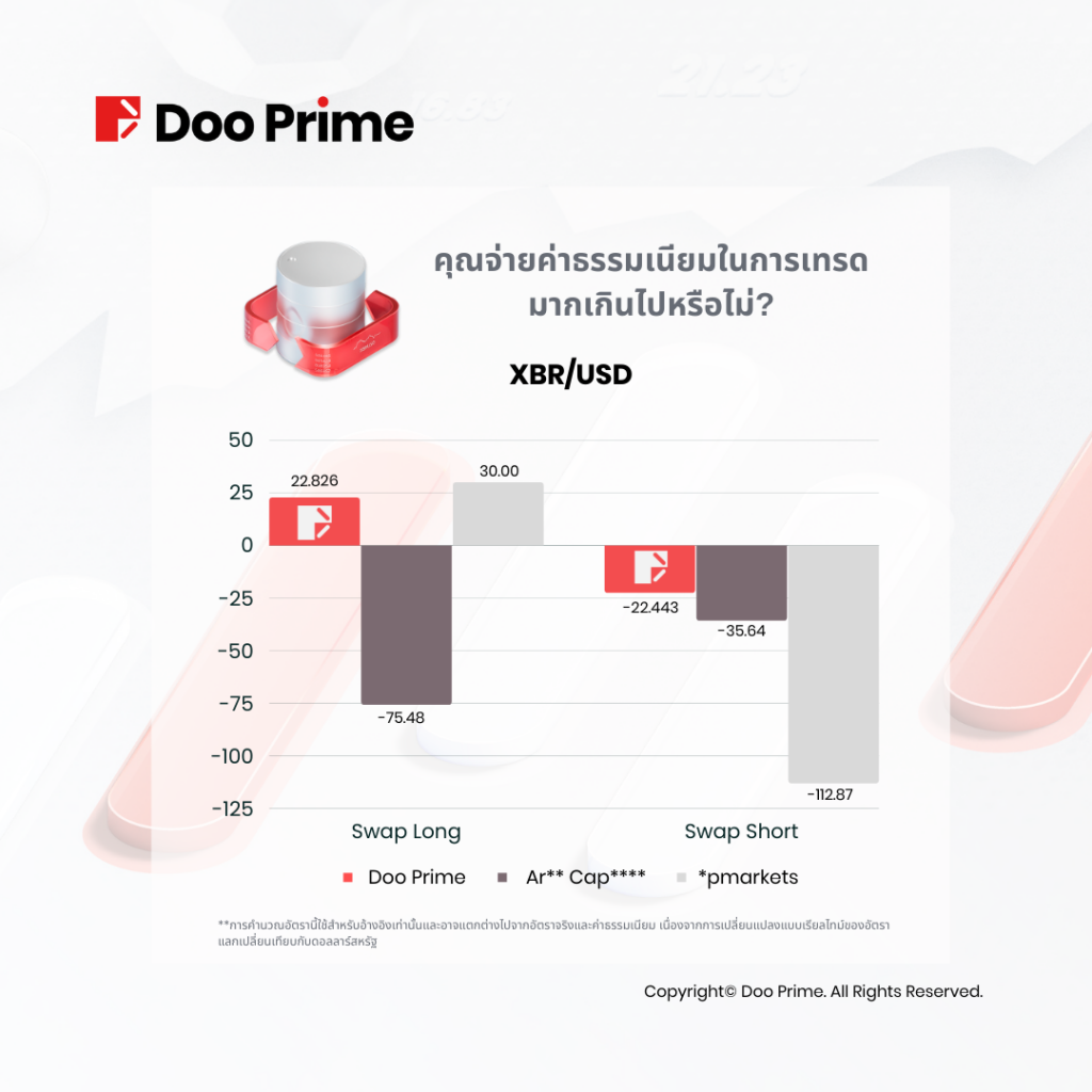 ด้านล่างนี้คือการเปรียบเทียบค่าธรรมเนียม Swap ระหว่าง Doo Prime และโบรกเกอร์อื่นๆ หลังจากการลดค่า Swap สำหรับผลิตภัณฑ์ที่เลือก**