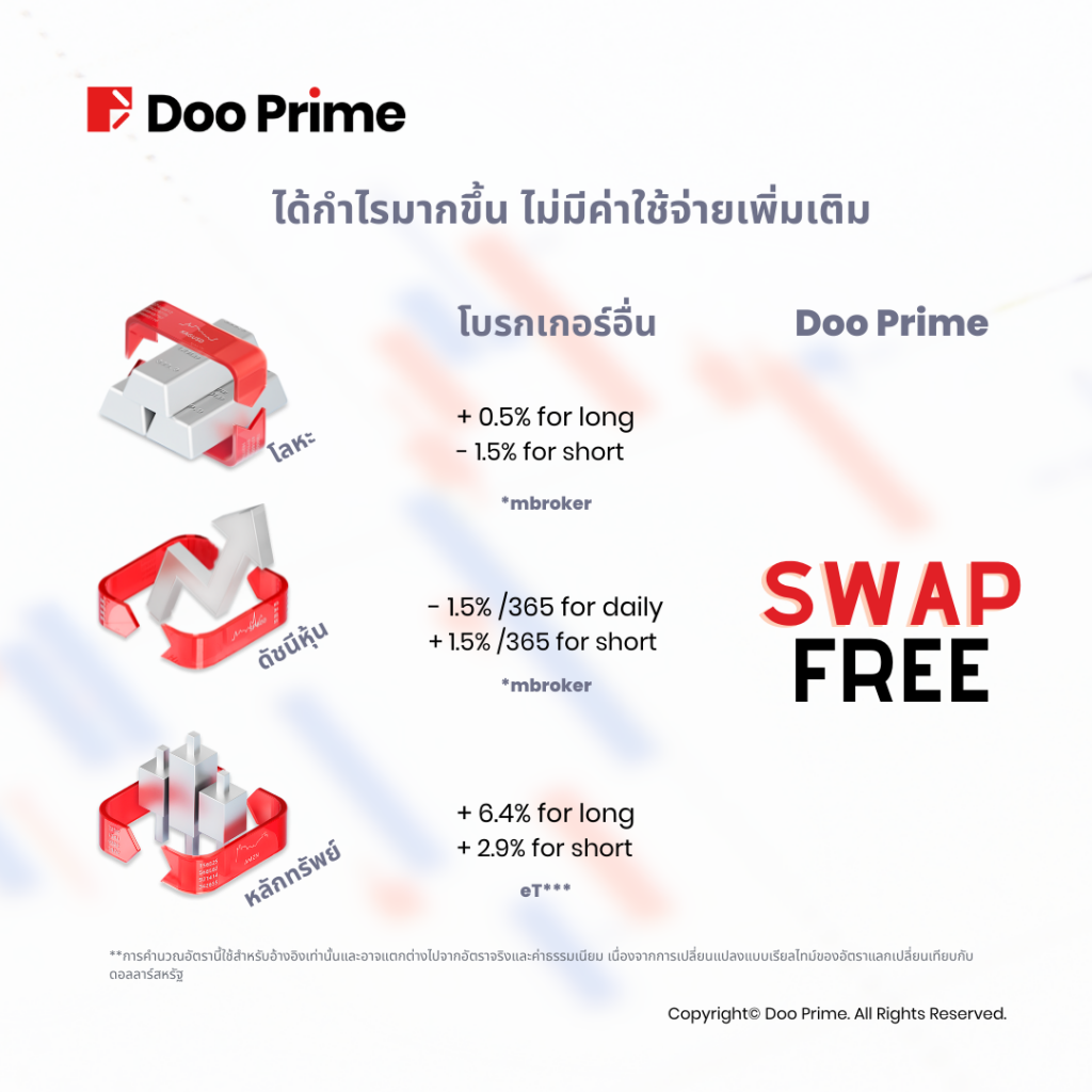“ลูกค้ามาก่อนเสมอ” Doo Prime ตัดสินใจเปิดตัวแคมเปญ Swap Free และการลดค่าธรรมเนียม Swap นี้ ซึ่งลูกค้าหลายท่านได้ร้องขอมา เราได้ยินเสียงของคุณ และเราพร้อมที่จะให้บริการคุณด้วยเงื่อนไขการซื้อขายที่ดียิ่งขึ้น