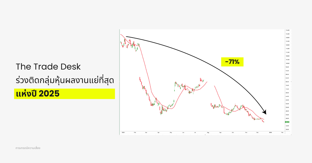 The Trade Desk เป็นหนึ่งในหุ้นเทคโนโลยีขนาดใหญ่ที่ร่วงลงอย่างน่าสังเกต ความกังวลเกี่ยวกับความต้องการโฆษณา การแข่งขันที่เพิ่มขึ้น และโมเมนตัมการเติบโตที่ช้าลงถ่วงความเชื่อมั่น ผลงานของหุ้นสะท้อนให้เห็นว่าตลาด ไม่ให้อภัย ต่อสัญญาณของการชะลอตัวในหุ้นที่มีมูลค่าสูง