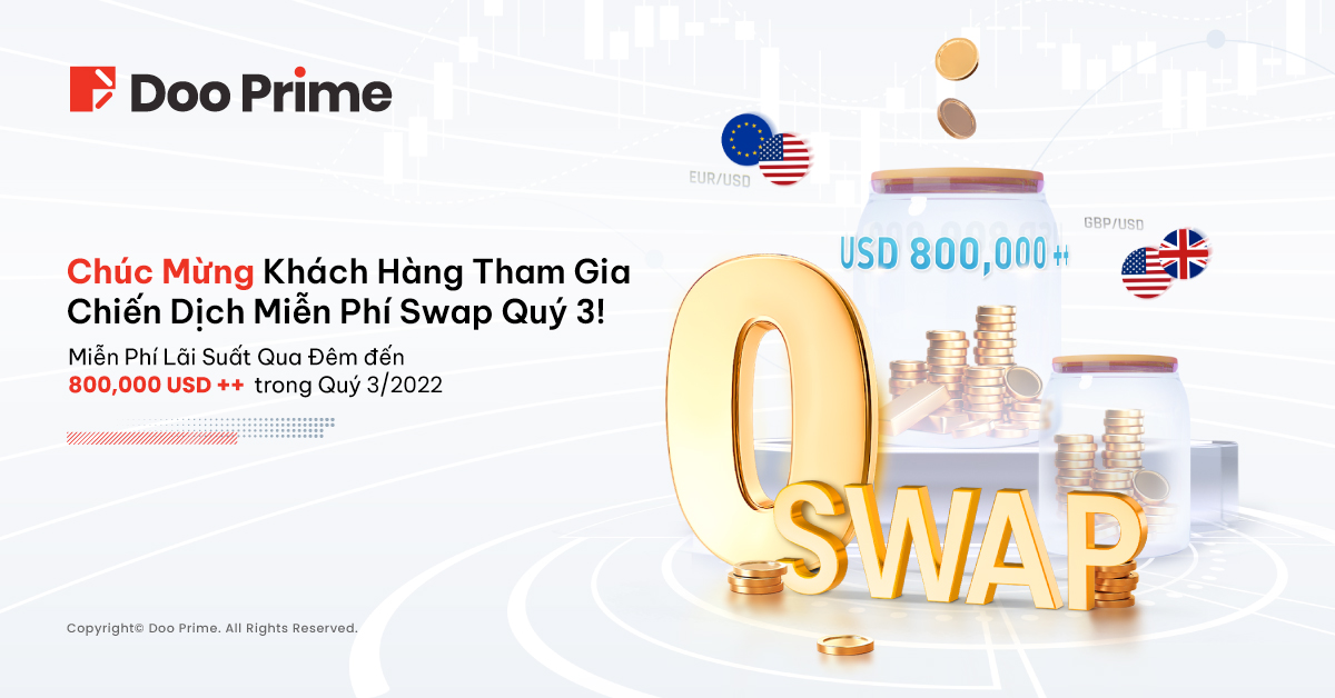Hãy tận dụng cơ hội này và giao dịch với Doo Prime ngay mà không cần phải trả phí lãi suất qua đêm. Vui lòng liên hệ với đội ngũ CSKH đa ngôn ngữ có mặt 24/7 của chúng tôi ngay để kích hoạt tuỳ chọn Miễn Phí Swap trên nhiều nền tảng giao dịch khác nhau như MetaTrader 4, MetaTrader 5, TradingView, Doo Prime InTrade và hơn thế nữa trước khi chiến dịch chính thức khép lại!