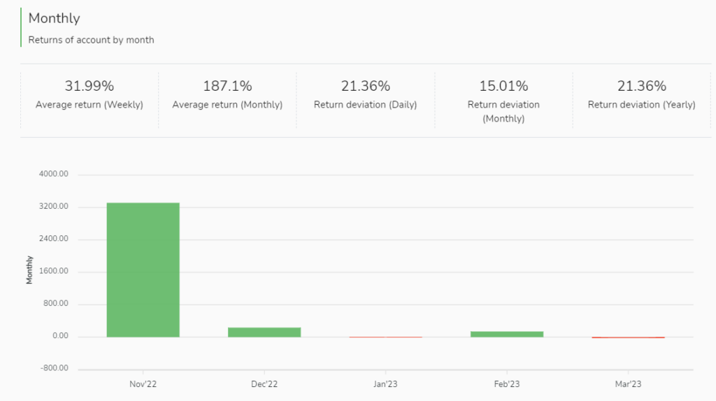 Xét về hiệu suất hàng tháng, người cung cấp tín hiệu giao dịch “Xiaoniu No. 0001” (小牛0001号) nhìn chung đạt các mức tăng ấn tượng trong tháng 11 năm ngoái, với mức lợi nhuận hàng tháng đạt 3,315.36%.